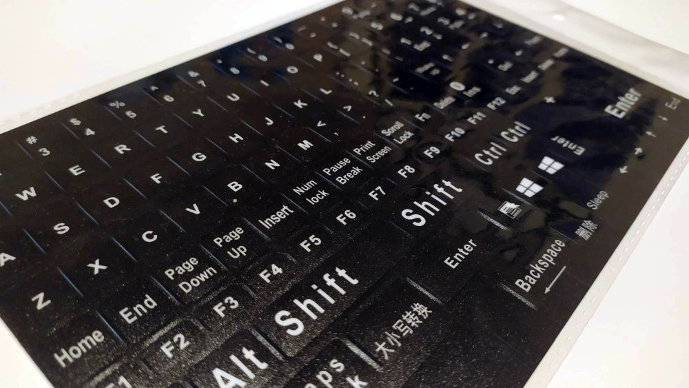 Transform your keyboard with this full set of durable black stickers featuring a small font for a fresh new look