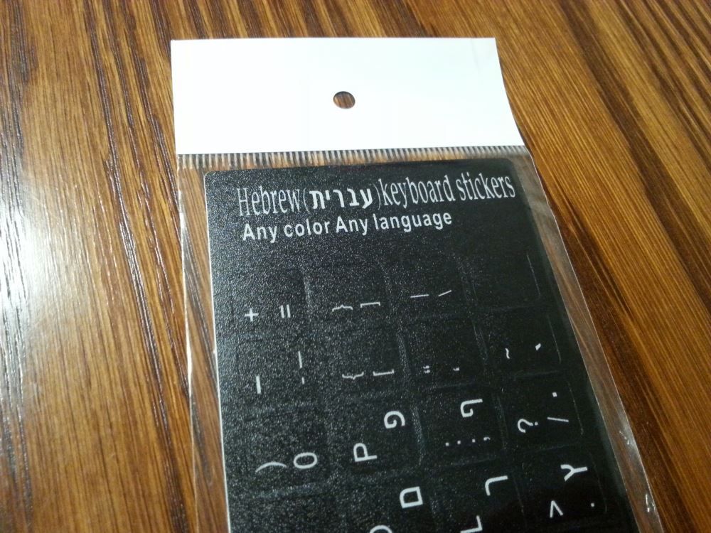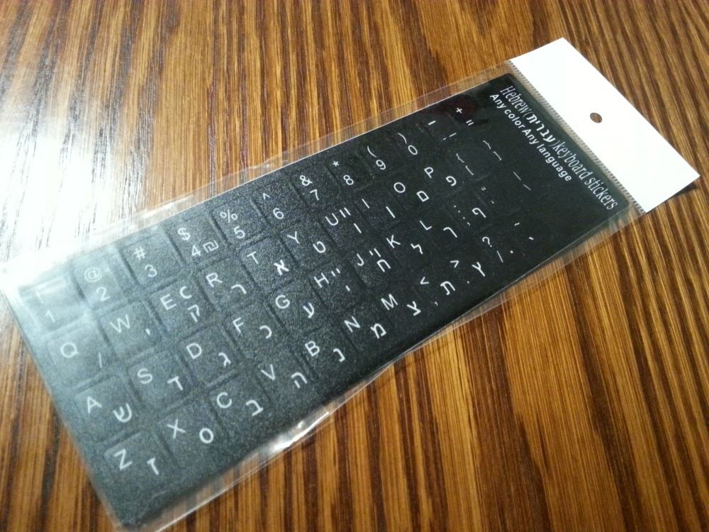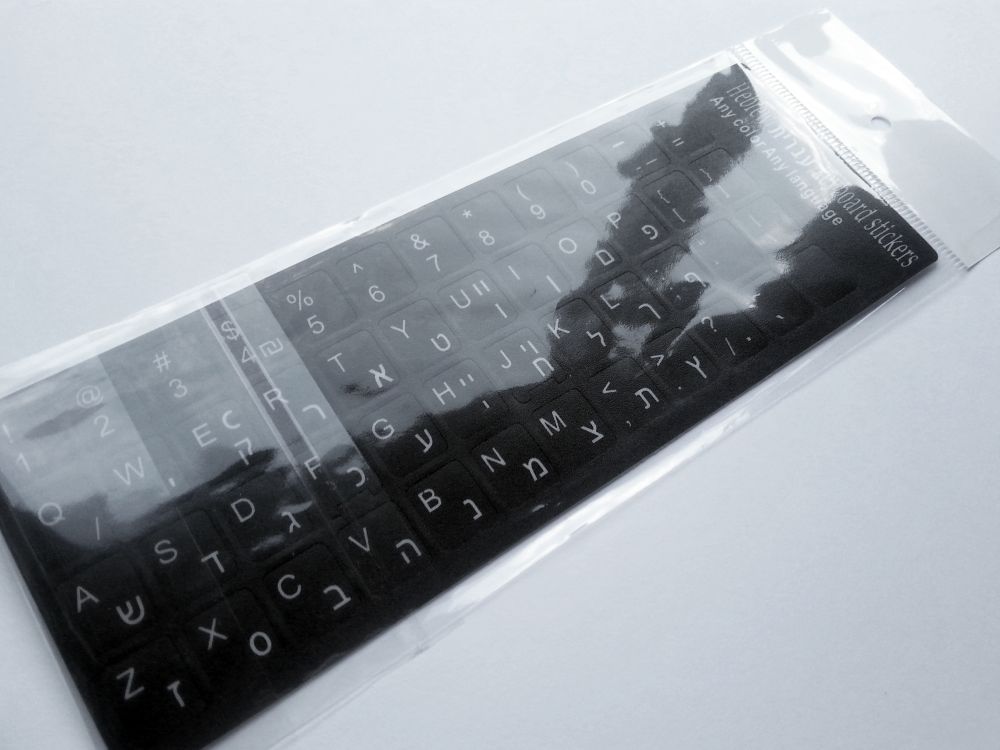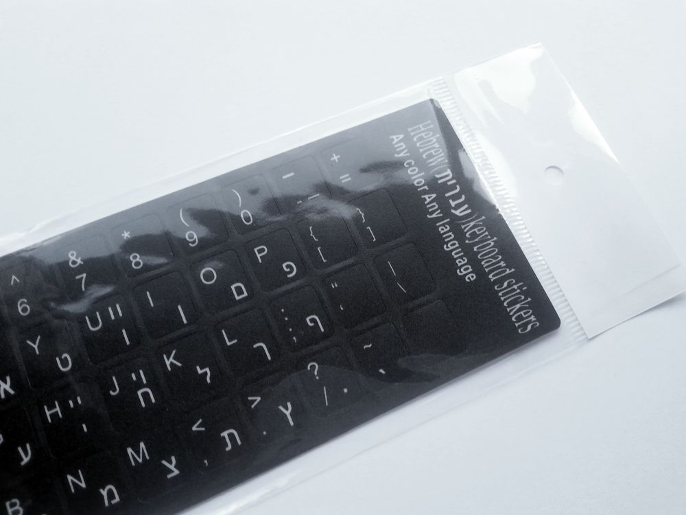 Experience seamless bilingual typing with durable black stickers that unite Hebrew and English characters for modern functionality.