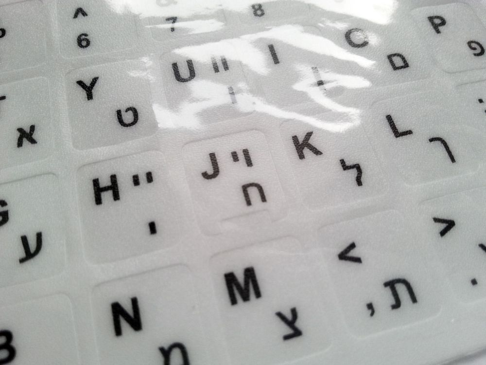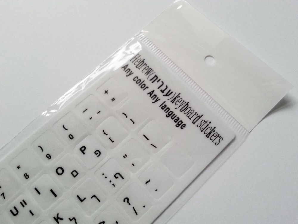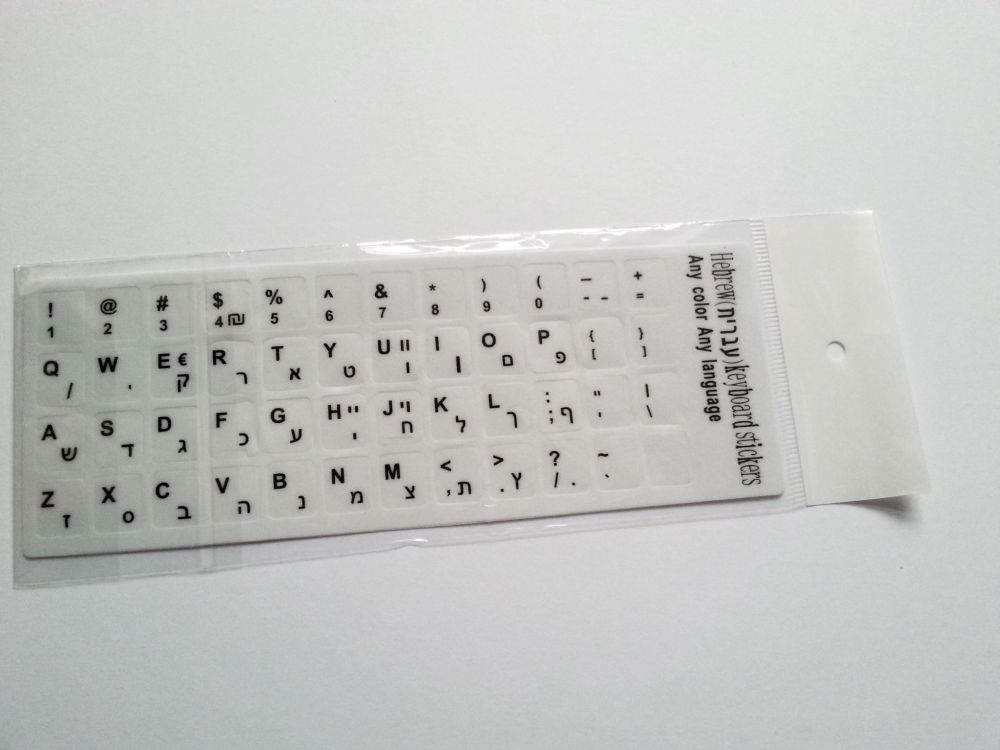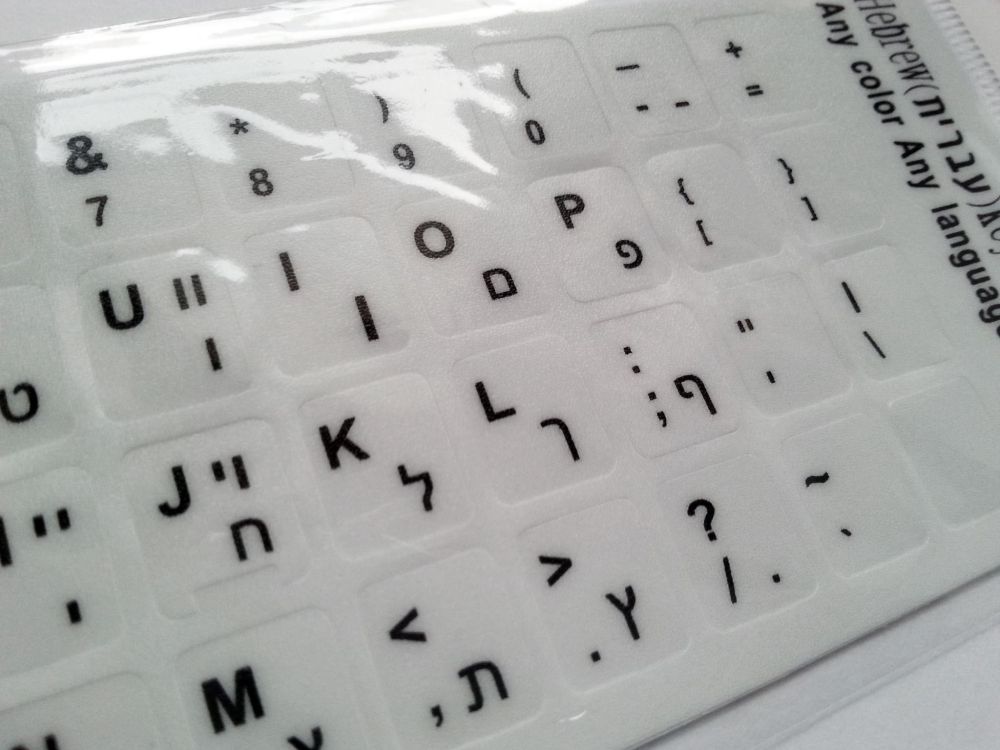 Modernise your device with durable white stickers integrating Hebrew and English characters, delivering clarity and lasting style.
