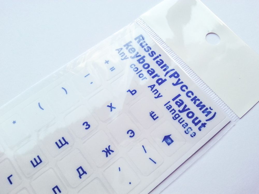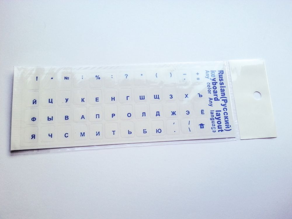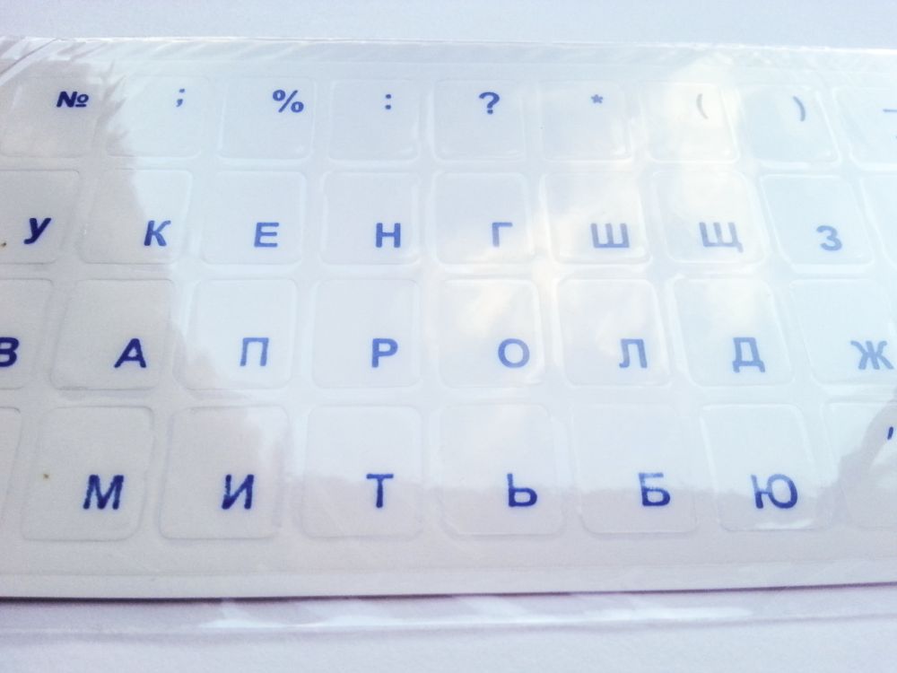 Enhance your device with transparent blue stickers featuring Russian characters, blending modern style with lasting durability.