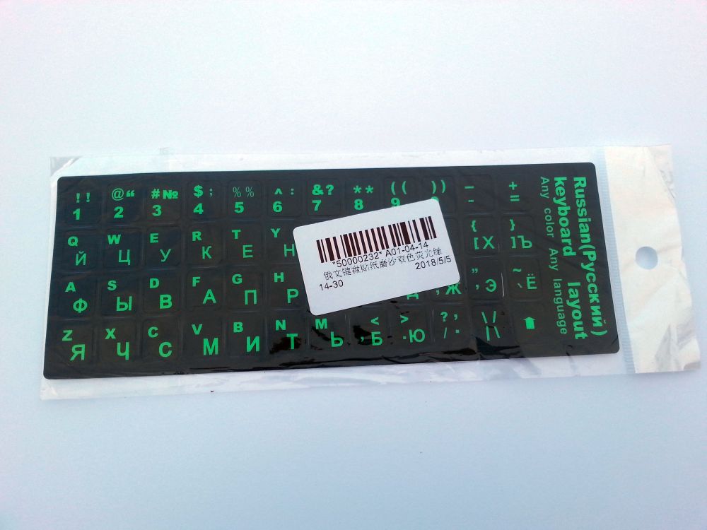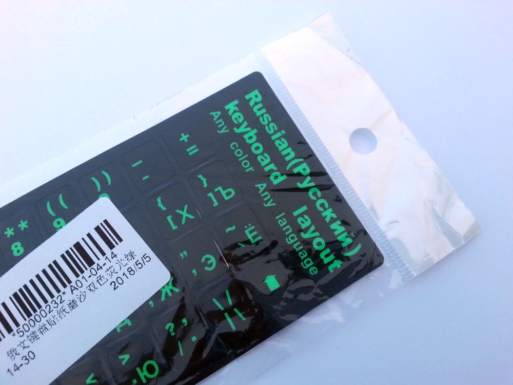Stand out with durable black stickers in fluro green accents that deliver a vibrant fusion of Russian and English layouts.