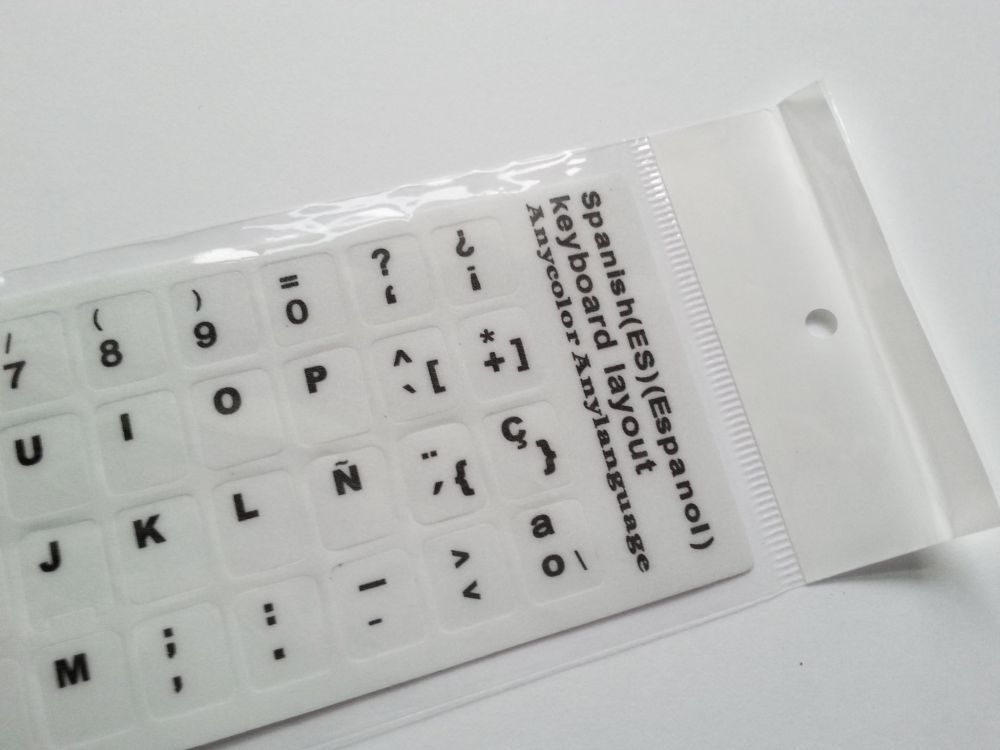 Rejuvenate your keyboard with durable white stickers that display crisp Spanish characters, ensuring clear and stylish typing.