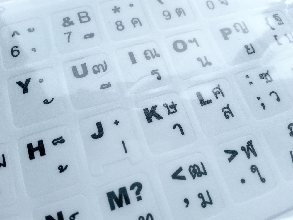 Upgrade your keys with durable white stickers featuring Thai and English characters, ensuring a crisp and modern look.